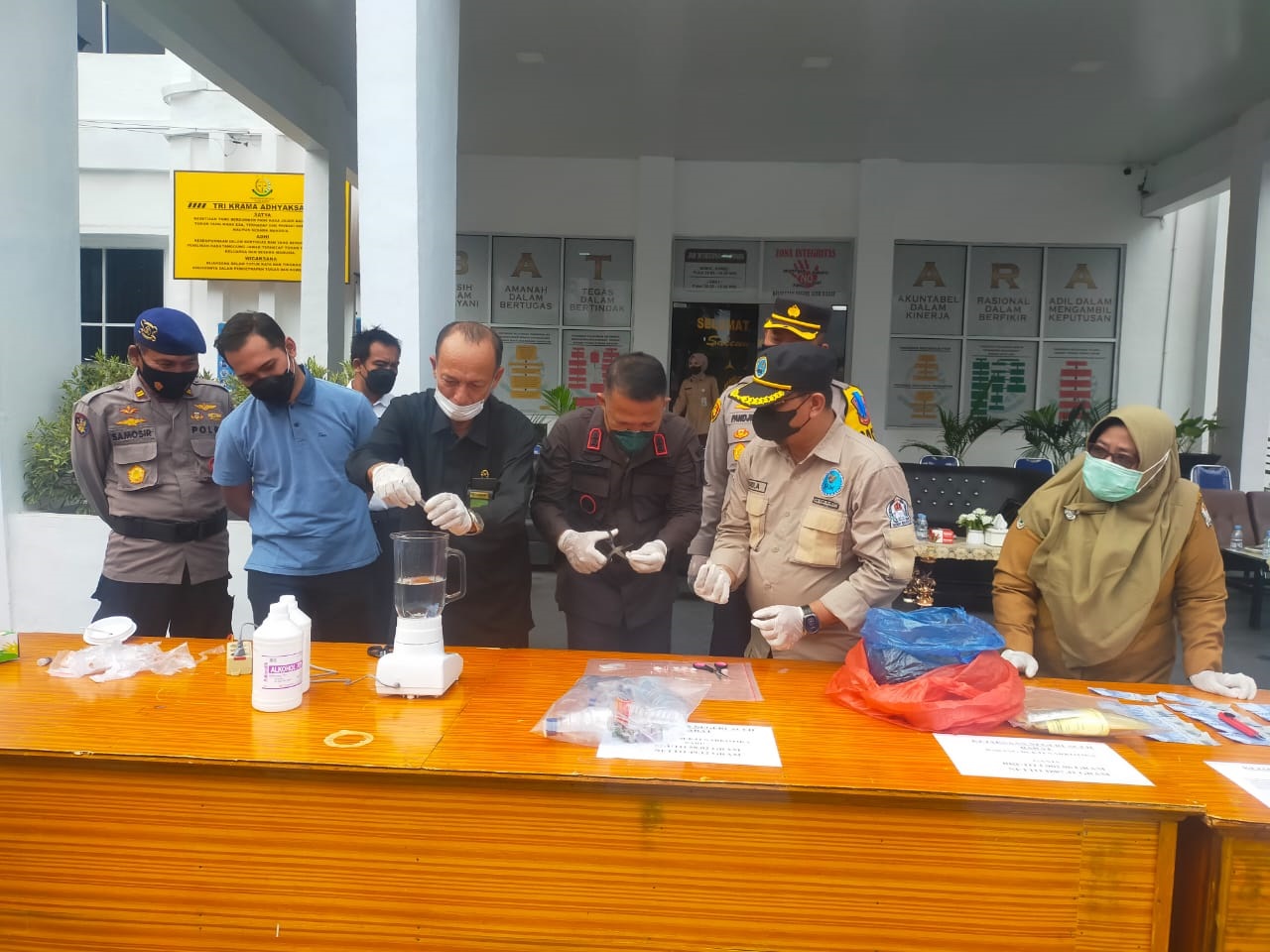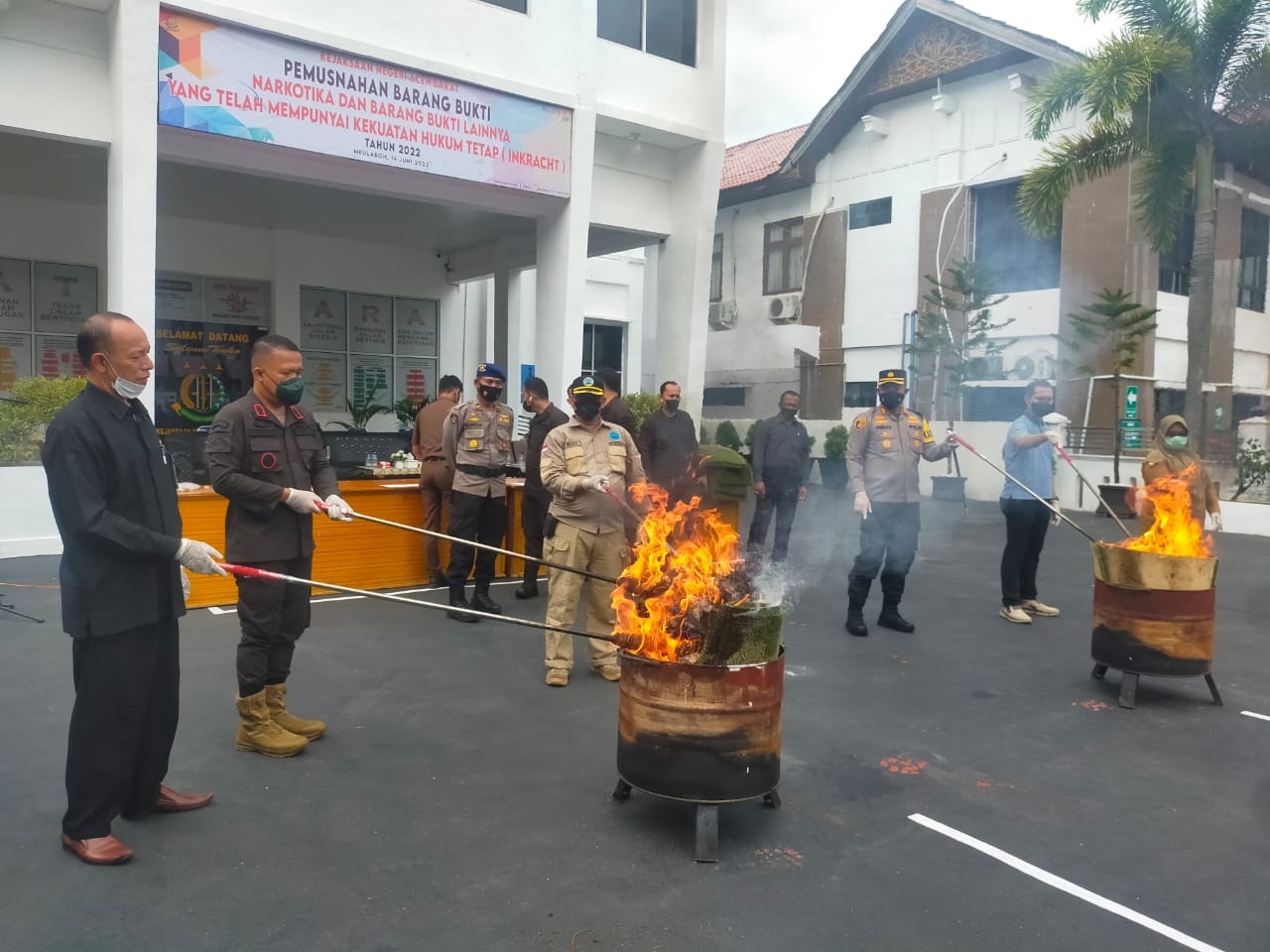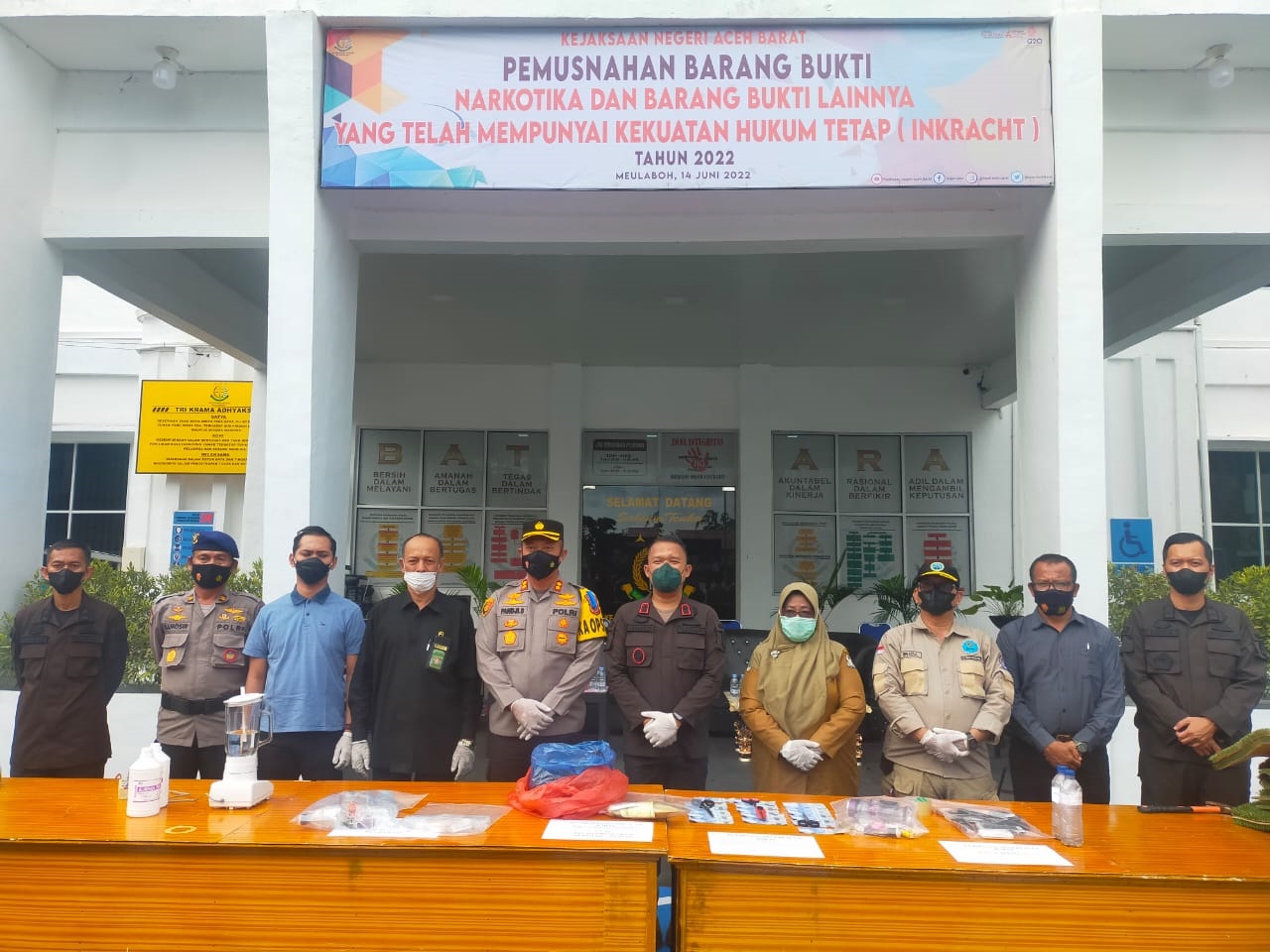 Selasa (14/06/2022) – Ketua Pengadilan Negeri Meulaboh, Bapak Muhammad Kasim, S.H., M.H. menghadiri undangan dari Kepala Kejaksaan Negeri Aceh Barat dalam rangka kegiatan pemusnahan barang bukti narkotika dan barang bukti tindak pidana umum lainnya, yang dilaksanakan di halaman kantor Kejaksaan Negeri Aceh Barat. Kegiatan ini juga dihadiri oleh Kapolres Aceh Barat, Kepala Dinas Kesehatan Aceh Barat, serta Ketua BNK Aceh Barat. Adapun barang bukti yang dimusnahkan adalah sabu, ganja, handphone, serta karpet.